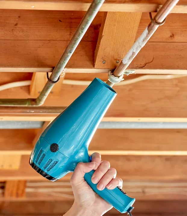 • NEVER thaw a frozen pipe with an open flame. You may start a fire and at the very least, your pipe will burst.